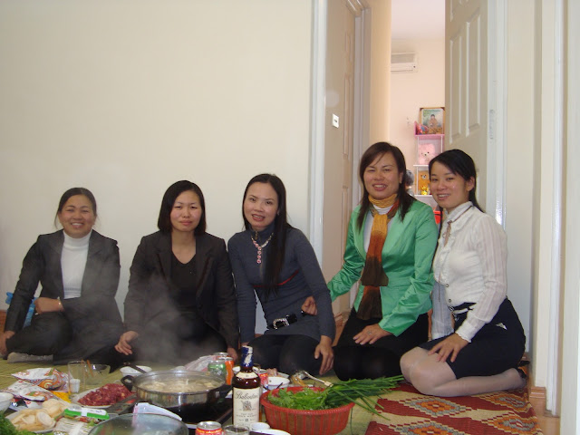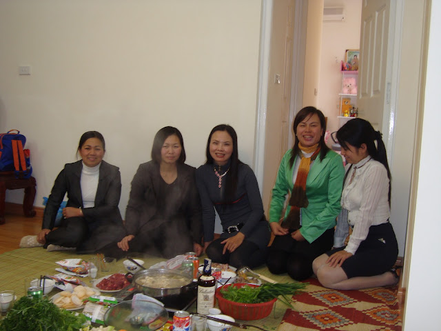 Từ trái qua phải :Cô Quyến ( không quản đường xa, mưa rét đi từ Thạch Thất đến - cách nhà tôi 30km), chủ nhà và Thu Hà, Lâm Hải ...và ai đây nhỉ ???
